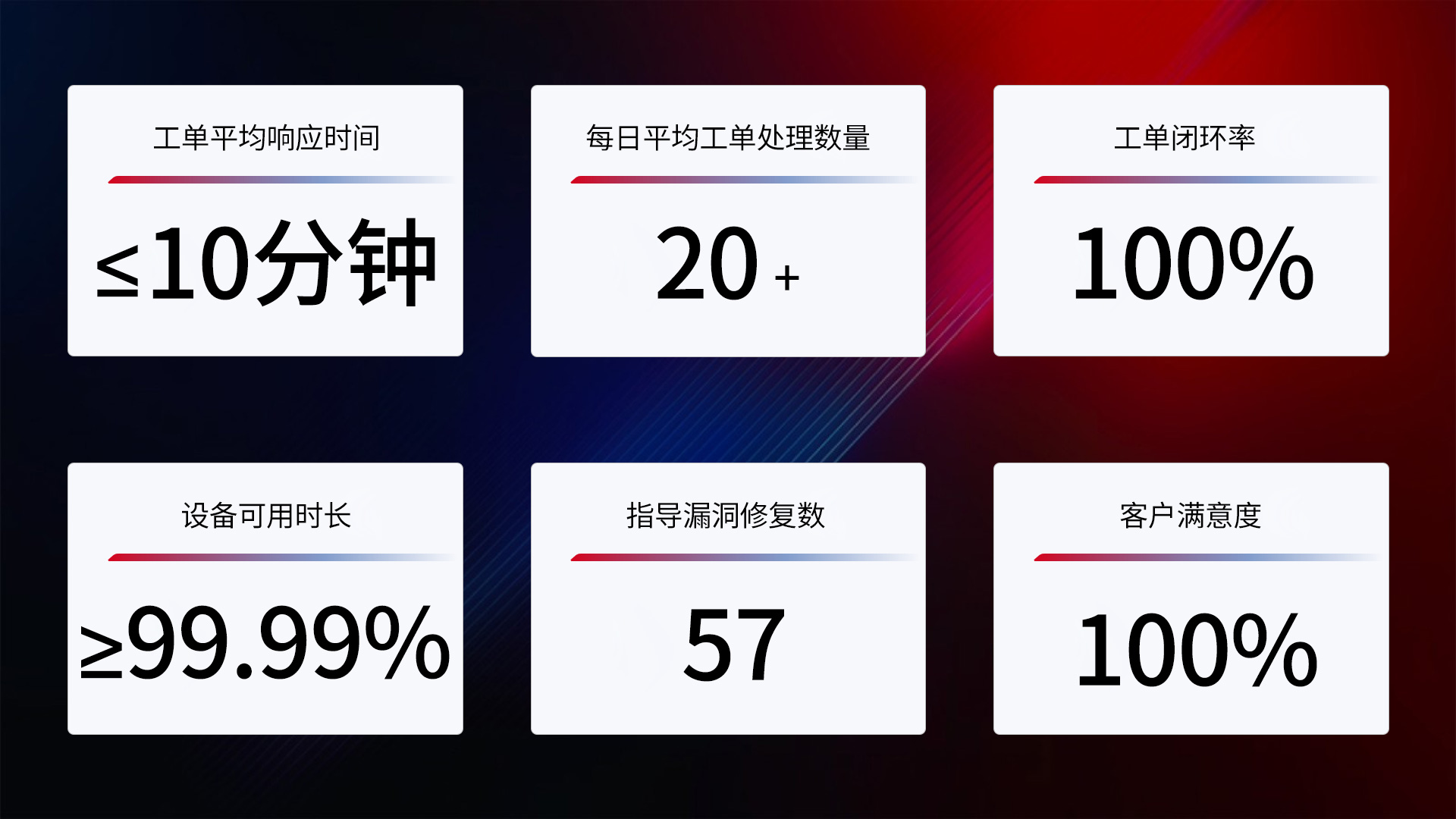 對工單和事件的平均響應時間小于10分鐘。對于潛在的業務中斷或技術故障能在萌芽階段被迅速捕獲和處理,極大縮短了平均修復時間(MTTR),直接保障了核心業務的穩定性和連續性,減少因故障導致的業務損失。